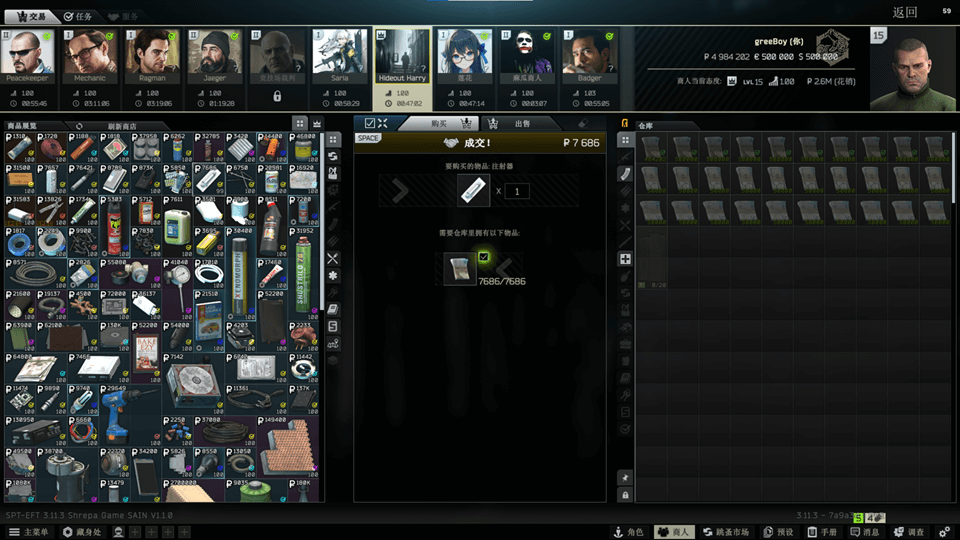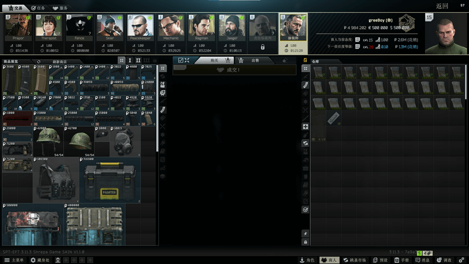 ## 认真看帖,游戏愉快,一目十行,保证头疼. >d **重要提醒** > > 逃离塔科夫单人离线版是由SPTarkov项目组开发并免费分享,请遵守相关协议条款。 > > 本站内容均来自于互联网,如有侵权,请联系站长删除。 > > 本站游戏安装包是在SPTarkov项目组开发的单机版逃离塔科夫的基础上,进行封装修改而来,并非单机版游戏作者。 >w **免责声明** > >本站所发布的所有内容均从互联网收集而来,无意侵犯任何人(企业)的利益和权益,仅供个人学习和研究使用,不得用于任何违法及商业用途,否则所有后果由个人承担,在收集资源时本站会确保其合法合规的情况下发布,但是其包含的内容不由本站实际控制,如有侵权和违规请联系qq:844832191,或者发邮件到asd4458@qq.com,会在查看到的第一时间删除相关内容。 > ## 相关链接 ~{kai}**逃离塔科夫官网网站**:~[https://www.escapefromtarkov.com/](https://www.escapefromtarkov.com/) ~{kai}**SPTarkov项目组官网**:~[https://hub.sp-tarkov.com/](https://hub.sp-tarkov.com/) ~{kai}**ODDBA中文社区**:~[https://sns.oddba.cn/](https://sns.oddba.cn/) ---  ## 版本介绍 **客户端游戏版本:** 0.16.1.3.35392 **服务器版本:** 3.11.3 --- **说明:** 此版本为原版内容打包而来,以SAIN机器人大脑行为管理系统、AQP任务优化模组、ABPS动态人机装备模组和MOAR人机刷新机制为核心的更新包,更新包采用一键安装的方式来安装游戏,大大简化游戏安装难度,并且自带过正版验证程序。 同时,支持游戏增量更新包,后续只需下载增量更新包即可对游戏进行升级(单机大版本内)。同时包含多种预设增强模组,比如实时地图、作弊功能(F12中设置)等。(更多详见下方的模组列表) ## 游戏截图 ### 服务器日志  ### 商人界面  ### 商人:badger  ### 商人:Saria  ### 商人:Hideout Harry(出售藏身处升级物品,带钩)  ### 商人:莲花商人   ### 商人:涂装师   ### 胶带弹匣  ### F12中的mod修改项目  ### SAIN机器人行为修改器  ### 快速出售选项  ### 命中、击杀数据统计  ### 商人收购价格查看  ### 自带游戏外挂  ### 钥匙分类  ### 更多对号标记(用来标注任务需要的物品)  ### SVM服务器参数修改器(游戏安装目录下/user/mods/[SVM] Server Value Modifier/Greed.exe)  ## 安装方式 **注意:首次安装游戏需下载并安装补丁和依赖文件!!!!!!!!!!** **注意:首次安装游戏需下载并安装补丁和依赖文件!!!!!!!!!!** **注意:首次安装游戏需下载并安装补丁和依赖文件!!!!!!!!!!** [【全版本通用】补丁/依赖文件(电脑第一次玩需要必装)](https://eft12138.top/doc/4/) --- **安装运行参考视频:** [【一键安装包】单机版逃离塔科夫整合版 3.10.5 SAIN 整合版 1.6.0 动漫任务、莲花更新-哔哩哔哩](https://b23.tv/i9BjV2j) **图文教程:** ## 版本内容 ### Version 1.2.0【2025年8月25日】 ``` #### 新增mod Lotus 1.5.5 "拥有超过 200+ 个任务、750+ 已售出和易货物品以及一张特殊的钥匙卡,可以进入无限实验室。 Lotus 的第一个任务应该出现在玩家等级 5" QuickSell 2.1.0 "物品点击右键可以使用 “QuickSell (Flea)” - 此按钮获取该商品在跳蚤市场上的平均价格,并自动以该价格列出该商品。 “QuickSell (Traders)” - 此按钮会自动为该特定商品选择价格最优惠的交易者并将其出售给他们" HarryHideout 2.2.1 出售所有物品用于藏身处建造/升级的商人 Painter 1.1.5 Painter 是一名销售独特武器模组和装备的商人。还有涂漆的武器部件(包括整个武器)。 Bosses Have Lega Medals 1.3.0 boss会掉落LEGA 勋章 Tactical Gear Component 1.2.2 额外的战术装备组件:增加超过70中头盔、弹挂、背包、面具、武器附件和服装等。 Mag Tape 1.0.8 带有不同颜色胶带的AK和AR系列弹匣,使其在地面更容易看到它们 StatTrack 1.2.2 统计跟踪:记录游戏中武器击杀、爆头次数等 #### 删除的MOD AQP - Algorithmic Quest Progression 通过算法难度调整每个交易者来改进任务,尽早优先考虑稀有任务。它将 Gunsmith 任务交换为 可配置的杀戮任务,平衡奖励,并简化游戏终局内容。高度可定制,带来新鲜体验。 #### 汉化 Lotus Epic's All in One 3.1.3 "增加超过100个以上,各种武器配件 包括Badger 交易员。" Painter 1.1.5 Painter 是一名销售独特武器模组和装备的商人。还有涂漆的武器部件(包括整个武器) ``` ### Version 1.1.0【2025年6月22日】 > 预装模组 ``` VRAM Cleaner 1.0.1 "好吧,现在你可以了!不,不是真的,但这个 mod 应该有助于清理大约 1-2GB 的 VRAM。在开始突袭倒计时结束后,会立即 出现一个小的延迟峰值,这只会在每次突袭开始时发生一次。 如果不是很明显,这与 - Ram Cleaner Fix 不同 - 不,它们不会冲突,您应该能够毫无问题地运行两者。我的 Mod 卸载了未使用 的资产,例如纹理、网格和音频,因此,清理了一大块 VRAM。Ram 清理器修复在一段时间内运行 BSG 的代码来“清理”RAM (不是 VRAM),实际上 BSG 的代码实际上只是将 RAM 分配给你的分页文件。" Epic's All in One 3.1.3 "增加超过100个以上,各种武器配件 包括Badger 交易员。" MoreCheckmarks 1.5.17 "更多对号标记 红色复选标记表示藏身处需要该物品,但需要更多物品才能满足您需要它的至少一个模块的要求。 绿色复选标记表示藏身处需要该物品,并满足所有需要它的模块的所需数量。 请注意,这并不意味着您有足够的资金来升级所有需要它的模块。 假设你需要 2 根电线来升级一个模块,需要 3 根电线来升级另一个模块,并且你的储藏处总共有 3 根电线, 那么复选标记将是蓝色的,但如果你升级其中一个模块,你将没有